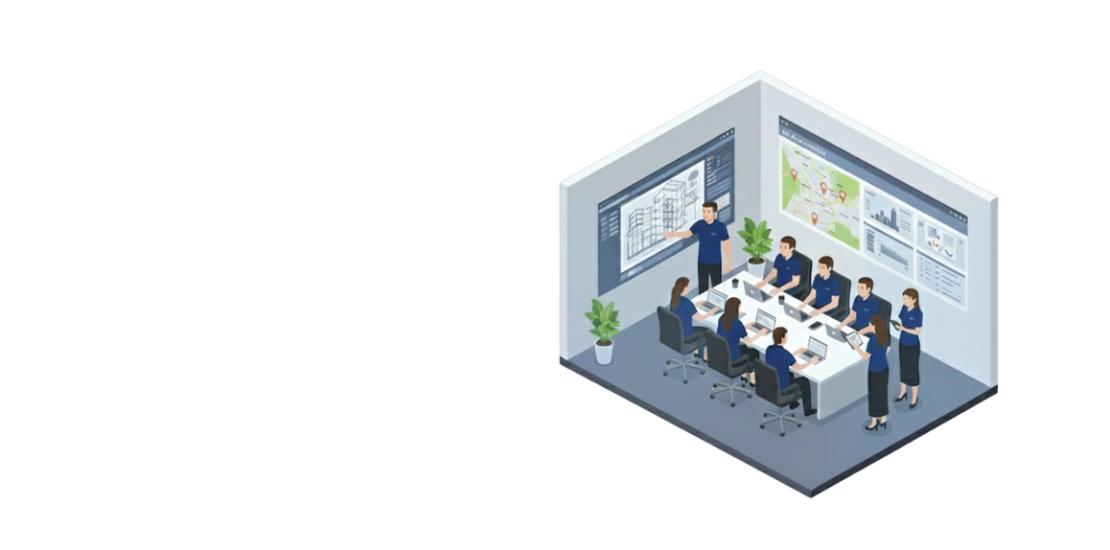 Customized consulting and development services for integrated DX solutions for construction companies, integrating systems, dashboards, applications, and web platforms to enhance efficiency in design, construction, disaster prevention, human resource development, and internal management.