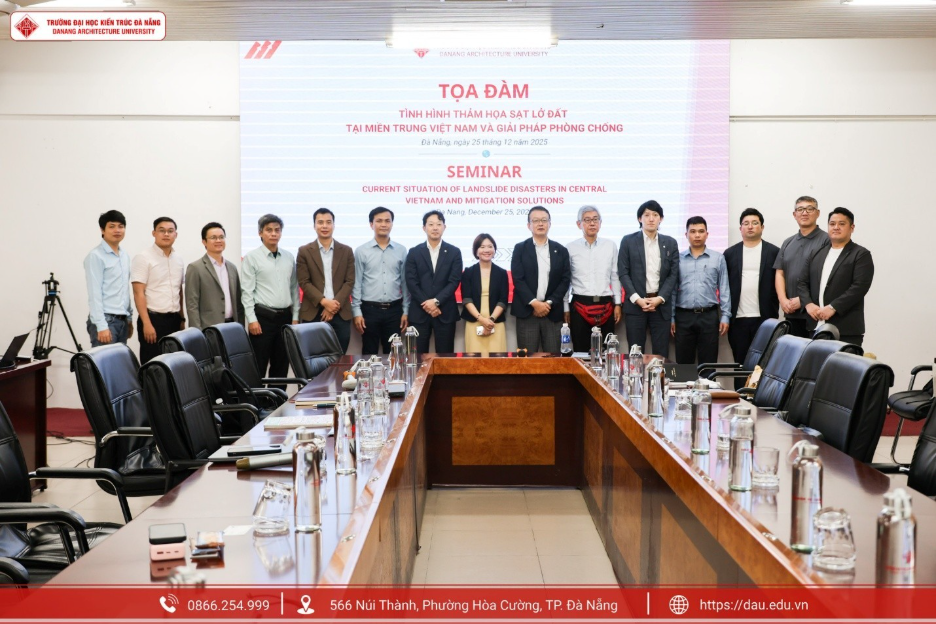 On December 25, 2025, PEDI took part in a high-level technical seminar on landslide disasters in Central Vietnam, held at the University of Architecture in Da Nang. The event, organized under the framework of international cooperation projects related to JICA, brought together experts, academics, and representatives from Japanese organizations, including Okuyama Boring Co., Ltd. and Hokuto Bank. The seminar served as an important platform to address the growing challenges of landslides in the region and to explore effective prevention and mitigation strategies.